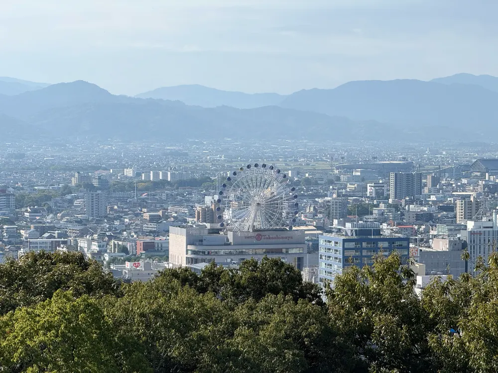 리프트 타고 올라간 직후 마쓰야마 시 전망을 봐봤습니다. 어젯밤에 탄 쿠루린 대관람차가 눈에 띄네요.