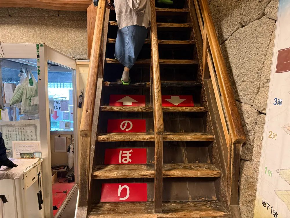 마쓰야마 성 내부에 올라가려면 계단을 올라야 합니다. 계단이 사진으로 보는 것보다 매우 가파릅니다.