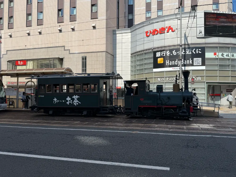 돌아가는 와중에 어제 도고 상점가 앞에 멈춰 서있던 봇짱 열차가 돌아다니네요.