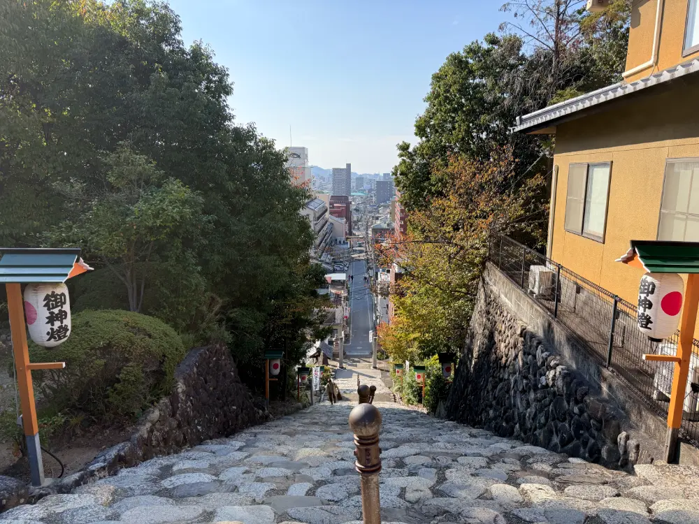 신사에 올라가서 보는 주변 풍경과 신사 올라가는 계단에서 신사를 바라보는 풍경 모두 멋집니다!