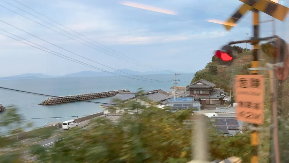 다카마쓰행 열차 이동방향 기준으로 좌측 자리에 앉으면 바다 풍경(세토내 해)을 볼 수 있습니다. 다만 나무에 가려지는 풍경이 많고, 바다 풍경 좀 볼법하면 금방 터널로 들어가는 경우가 많아 흠좀…