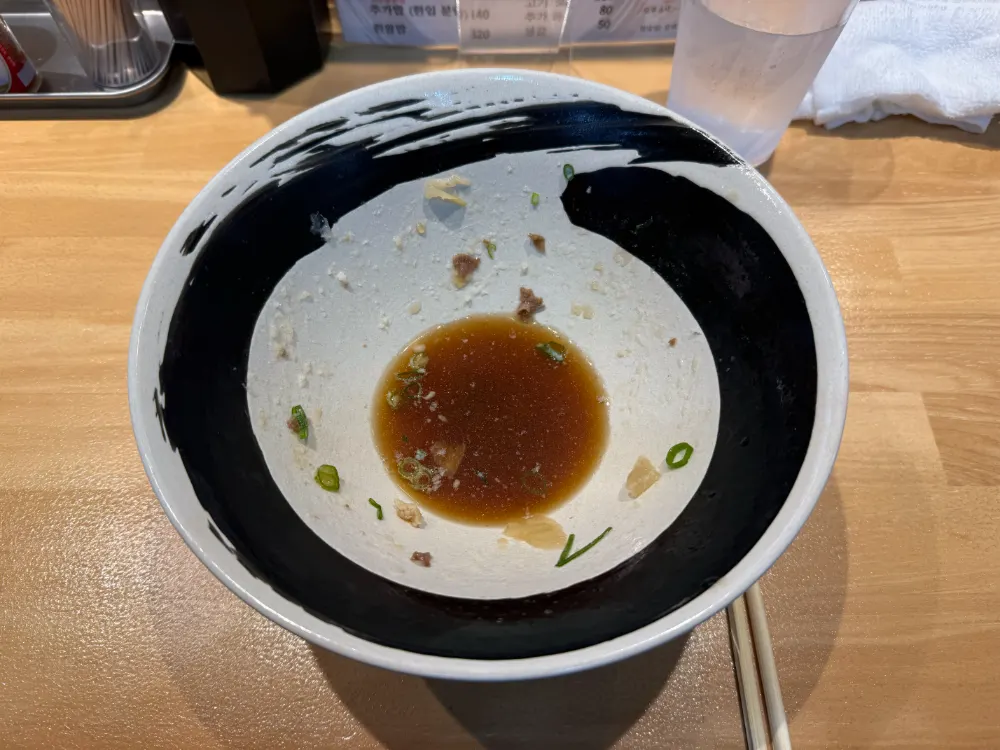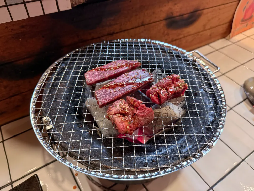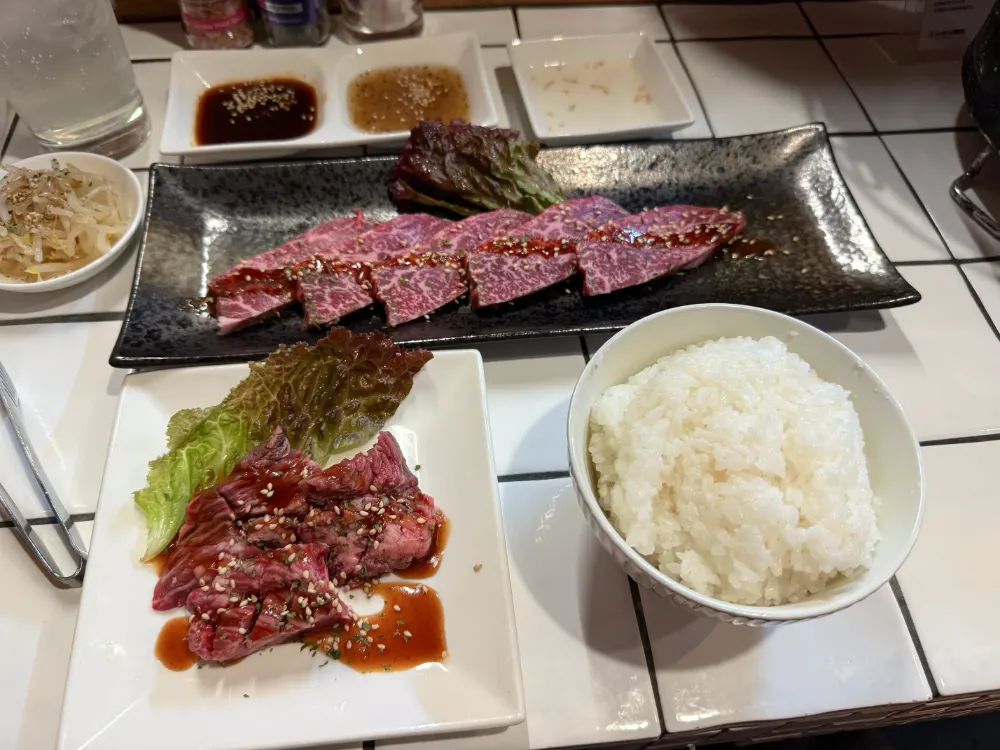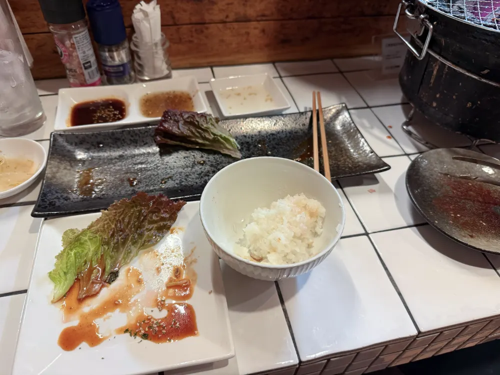 꺼-억! 이치보는 질겨서 좀 실망했지만, 하라미 하프는 구워도 구워도 사라지지 않는 육즙 덕분에 살살 녹았습니다! 1인 손님을 위한 하프 사이즈 메뉴가 있는 것도 마음에 들고요. 너무 배불러서 밥은 어쩔 수 없이 남겼…