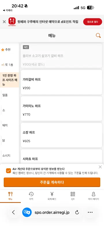 QR 코드로 주문하라고 해서 보니 어이쿠… 올리브규가 품절됐군요. 이거 먹으로 온 건데… 😓