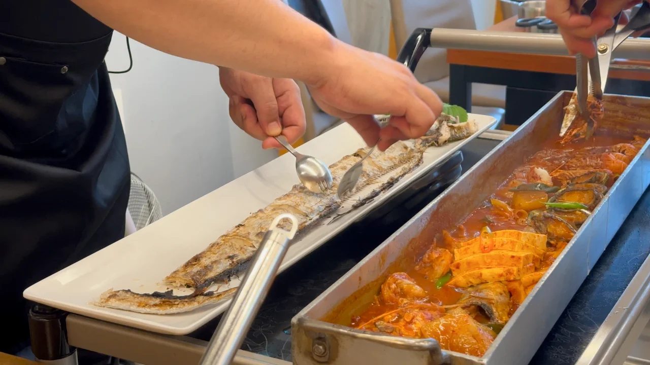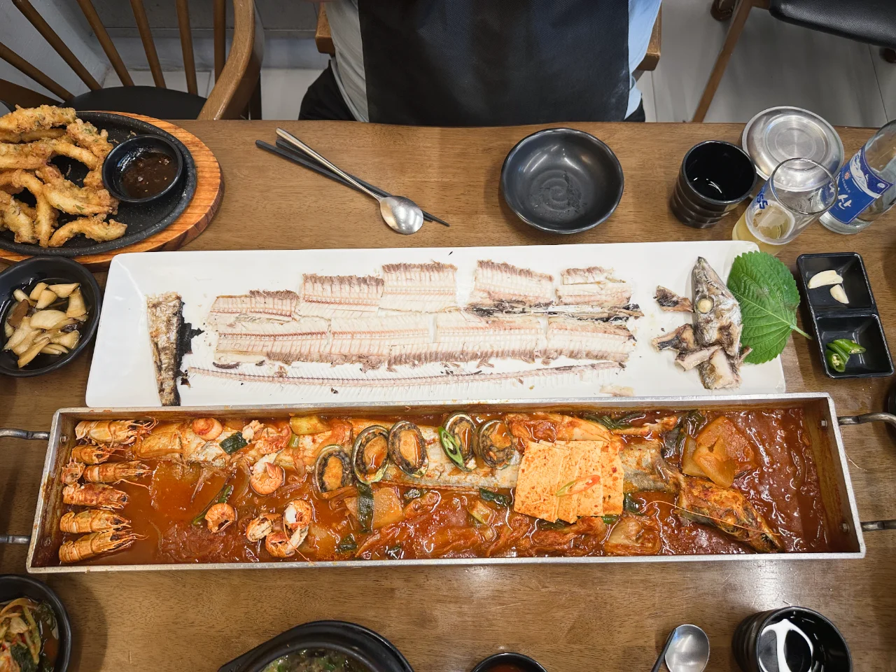 해녀세자매라는 식당에서 갈치 구이와 조림, 몸국 등이 나오는 3인 세트를 주문했습니다. 맛있습니다. 😊