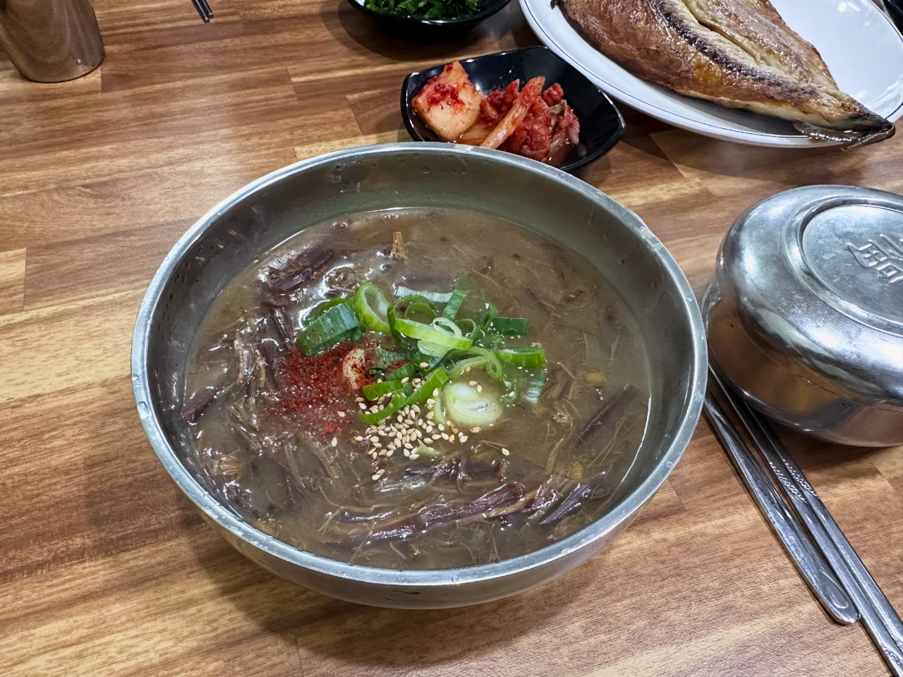 삼도해장국이라는 식당에서 고사리 육개장과 고등어 구이를 먹었습니다. 육개장도 맛있었는데 무엇보다 묵은지가 너무 존맛!