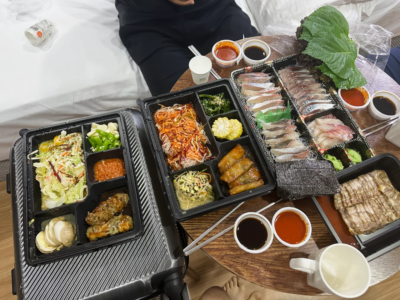 이눔시키들… 무제한 바비큐나 많이 먹을 것이지 자기 직전에 회 한 사다바리(?)를 배달시켜 먹다니 😤 (오히려 좋아! 😅)